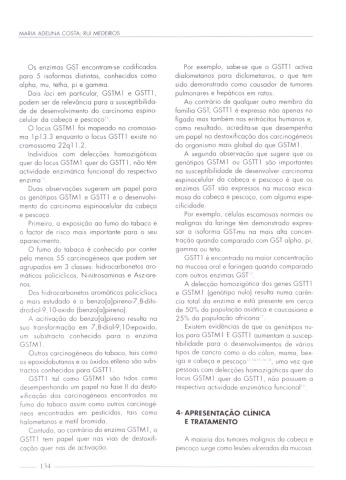 os genó'ipos GSTMI e GSTTI e o desenvolvi- moso do cabeça e pescoço, com olgumo espe