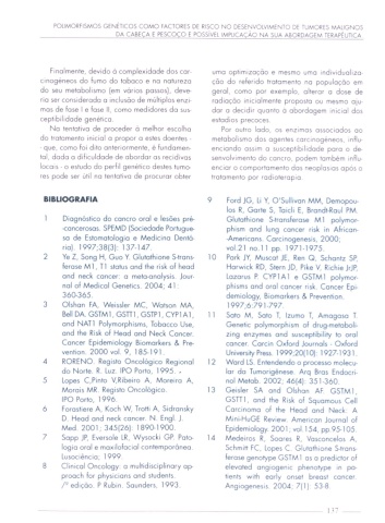 Morois MR. Registo Oncológica. 13 Geisler SA ond Olshon AF. GSTM1,