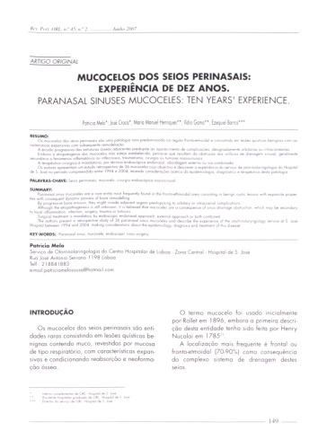 PARANASAL SINUSES MUCOCELES: TEN YEARS' EXPERIENCE.