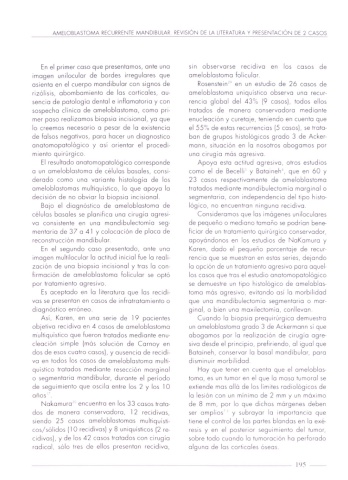 AMELOBLASTOMA RECURRENTE MANDIBULAR. REVISIÓN DE [A LITERATURA v PRESENTACIÓN DE 2 CASOS