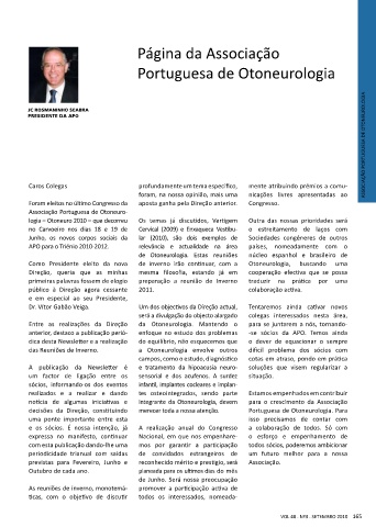 notícia de algumas iniciativas e integrante da Otoneurologia, devem para o crescimento da Associação