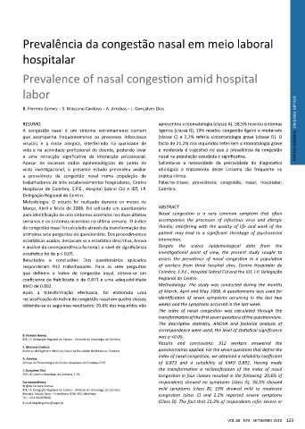 trabalhadores de três estabelecimentos hospitalares, Centro Palavras-chave: prevalência; congestão; nasal; hospitalar;