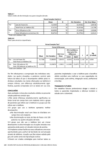 Por fim efectuamos a comparação dos indivíduos estu- pacientes implantados a usar o telefone pois o benefício