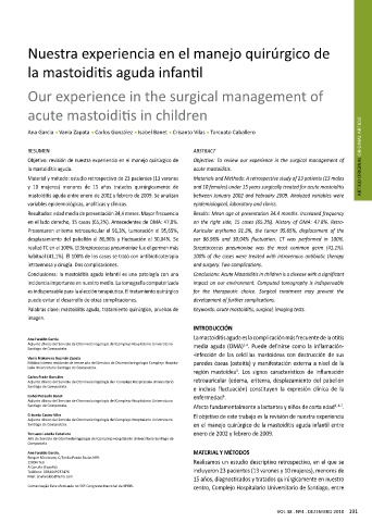 Palabras clave: mastoiditis aguda, tratamiento quirúrgico, pruebas de Keywords: acute mastoiditis, surgical, imaging tests.