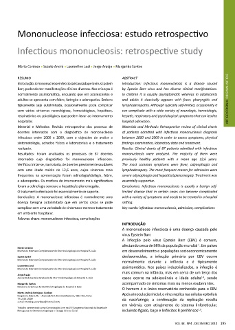 doentes internados com o diagnóstico de mononucleose of patients admitted with infectious mononucleosis diagnosis
