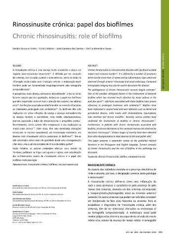 Neste trabalho, os autores pretendem efectuar uma revisão da of chronic rhinosinusitis and the role of biofilms in this pathology are