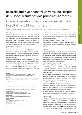 Serviço de Otorrinolaringologia, Hospital de S. João – E.P.E. neonatais. Sendo a sua prevalência superior às