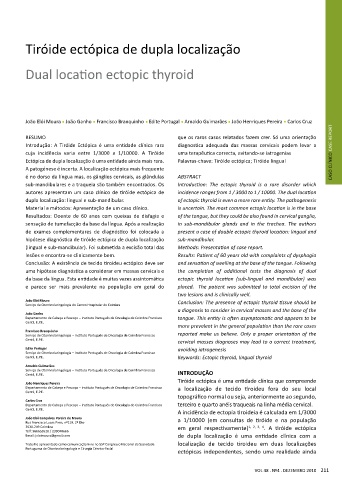 Ectópica de dupla localização é uma entidade ainda mais rara. Palavras-chave: Tiróide ectópica; Tiróide lingual
