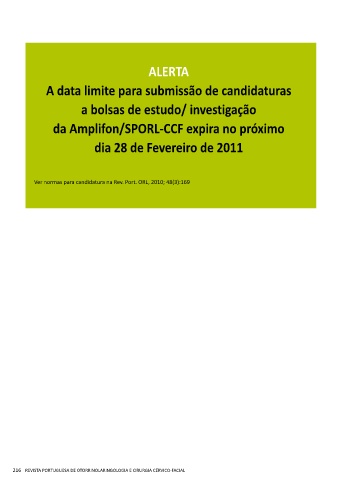 216 REVISTA PORTUGUESA DE OTORRINOLARINGOLOGIA E CIRURGIA CÉRVICO-FACIAL