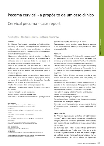 tumours”) são tumores mesenquimatosos, normalmente tumor do escavado do trapézio, tumor perivascular, tumor CASO CLÍNICO CASE REPORT
