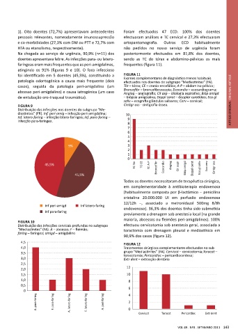 faríngeas eram mais frequentes que as peri-amigdalinas, frequentes (figura 11).
