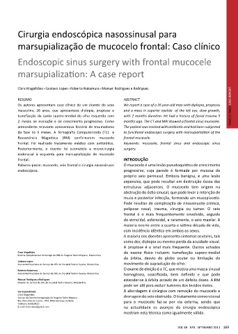 Palavras-passe: mucocelo, seio frontal e cirurgia nasossinusal O mucocelo é uma lesão pseudoquística de crescimento