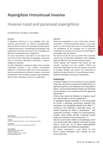 de tratamento médico e cirúrgico é uma boa opção terapêutica. Keywords: Aspergillosis, rhinosinusal, complications.