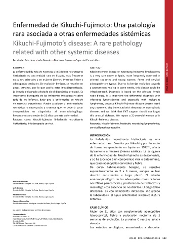 La enfermedad de Kikuchi-Fujimoto o linfadenitis necrotizante Kikuchi-Fujimoto disease or necrotizing histiocytic lymphadenitis