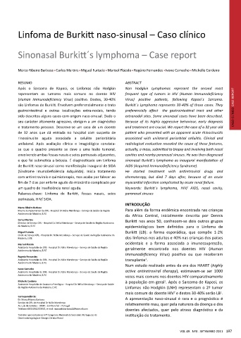 sido descritos alguns casos com origem naso-sinusal. Dado o extranodal sites. Some sinonasal cases have been described.