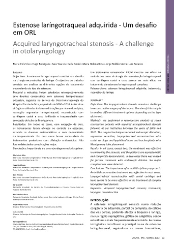 Assistente Hospitalar do Serviço de Otorrinolaringologia e Cirurgia Cérvico-Facial do Keywords: Acquired laryngotracheal stenosis; treatment;