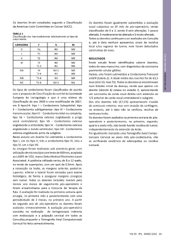 da American Joint Committee on Cancer (AJCC). vocal subjectiva ao 6º mês de pós-operatório, sendo