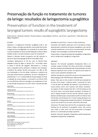 mas com capacidade de exérese tumoral adequada. É objectivo deste laríngeas numa percentagem considerável dos doentes.