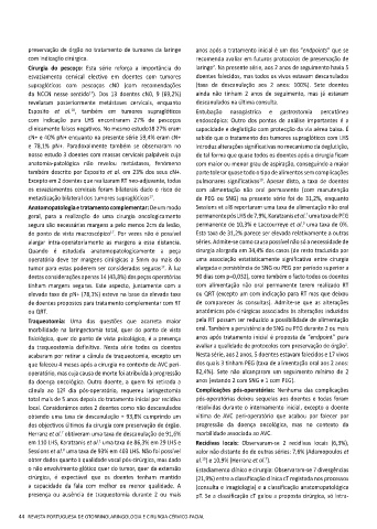 Anatomopatologia e tratamento complementar: De um modo Sessions et al8 reportaram uma taxa de alimentação não oral