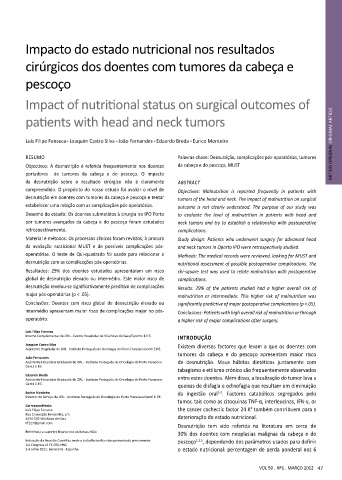 desnutrição em doentes com tumores da cabeça e pescoço e tentar tumors of the head and neck. The impact of malnutrition on surgical