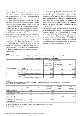entre desnutrição e complicações pós-operatórias em doentes de desnutrição em 2 grupos: o grupo dos doentes com