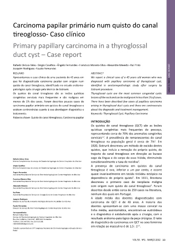 que foi diagnosticado carcinoma papilar com origem num diagnosed with papillary carcinoma of thyroglossal cyst, CASO CLÍNICO CASE REPORT