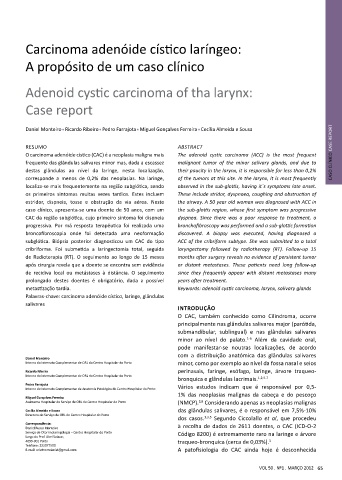 O carcinoma adenóide cístico (CAC) é a neoplasia maligna mais The adenoid cystic carcinoma (ACC) is the most frequent CASO CLÍNICO CASE REPORT