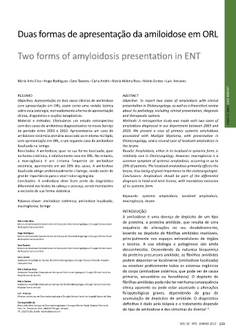 com apresentação em ORL, e um segundo caso de amiloidose Otolaryngology, and a second case of localized amyloidosis in