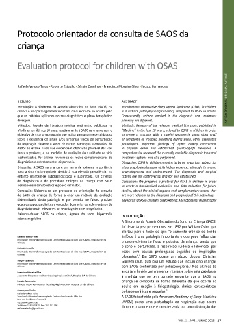 de SAOS da criança de forma a criar um método de avaliação are more relevant to the diagnosis and prognosis of this pathology.