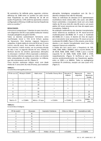 manifestação inicial e 71% (n=5) tinham queixas para transplante renal apresentava PA neuro-sensorial