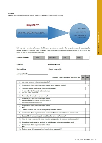 FIGURA 1 Inquérito desenvolvido para avaliar hábitos, cuidados e tratamentos alternativos utilizados ARTIGO ORIGINAL ORIGINAL ARTICLE VOL 52 . Nº3 . SETEMBRO 2014 141