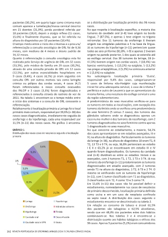 Quanto á referenciação à consulta oncológica esta foi ao esófago cervical. Dos 38 tumores da laringe, 18 (n-