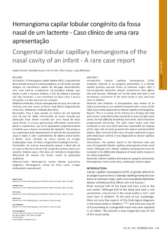 Palavras-chave: Hemangioma capilar lobular; granuloma hemangioma; nasal cavity mass; endoscopic nasal surgery