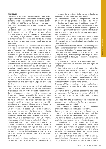 La incidencia del neumomediastino espontáneo (NME) alcanza tórax, miembros superiores y cuello.