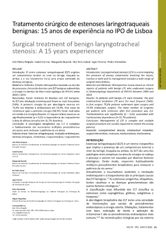 Chefe do Serviço de Otorrinolaringologia do Instituto Português de Oncologia de estenoses como supraglóticas, glóticas, subglóticas e