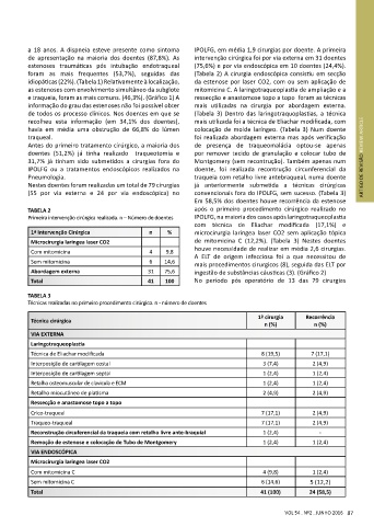 de todos os processo clínicos. Nos doentes em que se (Tabela 3) Dentro das laringotraquoplastias, a técnica