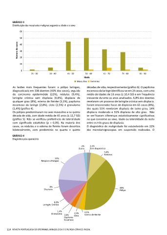 escamoso da laringe (2,8%), cisto (2,5%) e granuloma Foram encontrados focos de displasia em 65 casos (8%),
