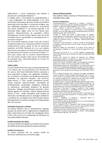 processo de cicatrização timpânico (1,7) . Não existiram fontes externas de financiamento para a