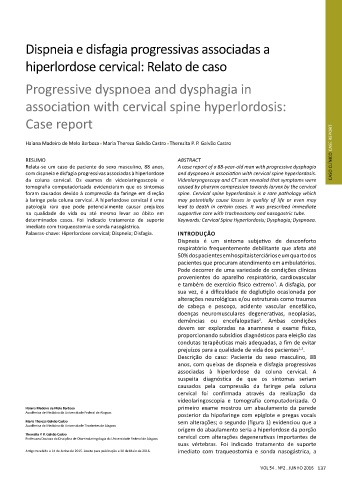 determinados casos. Foi indicado tratamento de suporte Keywords: Cervical Spine Hyperlordosis; Dysphagia; Dyspnoea.