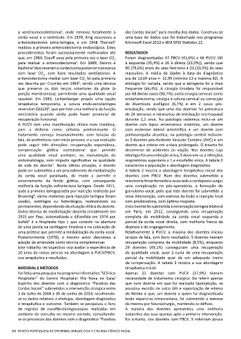 porção membranosa), permitindo uma qualidade vocal por 68 destes casos (90,7%); outra cirurgia cervical, como