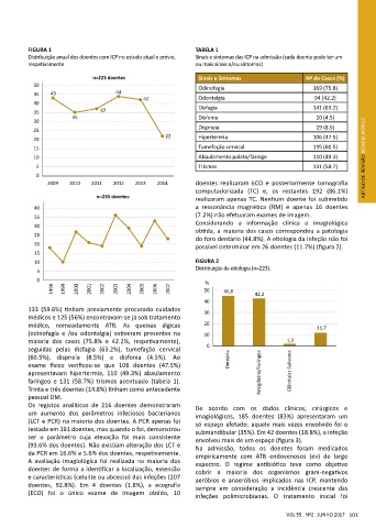 Distribuição anual dos doentes com ICP no estudo atual e prévio, Sinais e sintomas das ICP na admissão (cada doente pode ter um