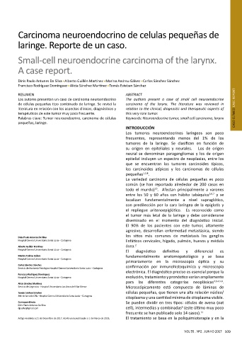 Palabras clave: Tumor neuroendocrino, carcinoma de células Keywords: Neuroendocrine tumor, small cell carcinoma, larynx