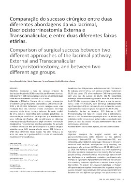 o Pearson chi-square test para comparar o sucesso cirúrgico Palavras-chave: Dacriocistite, Epífora, Dacriocistorrinostomia