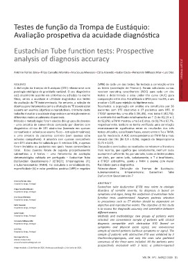 especificidade (E) e valor preditivo positivo (VPP) e negativo Palavras-chave: Disfunção da Trompa de Eustáquio;