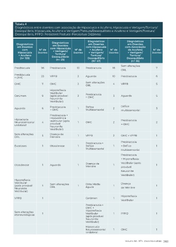 Diagnósticos entre doentes com associação de Hipoacusia e Acufeno, Hipoacusia e Vertigem/Tontura/