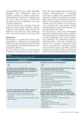 TC, apenas esta descrição. O questionário 45.5% não realizariam imediatamente biópsia.