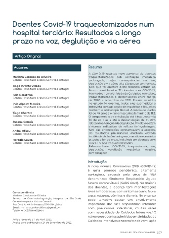 Artigo recebido a 7 de Abril 2022. Cuidados Intensivos a necessitar de ventilação