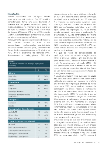 média de idades no momento da cirurgia foi 92% das perfurações pós-tubo) e em 40%