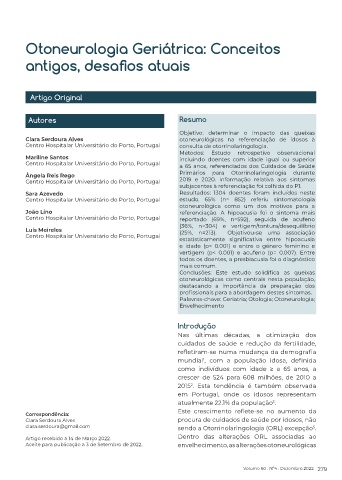 Aceite para publicação a 3 de Setembro de 2022. envelhecimento, as alterações otoneurológicas