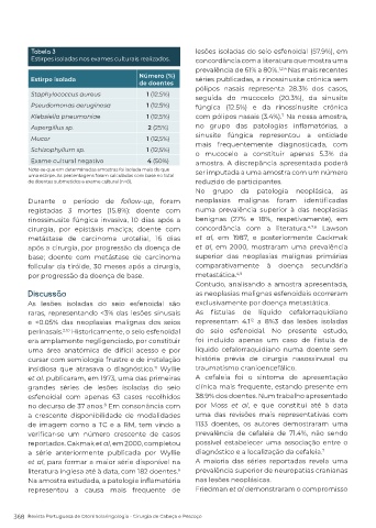 Tabela 3 lesões isoladas do seio esfenoidal (57.9%), em